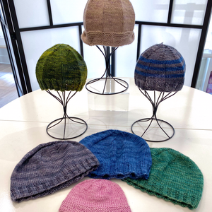 This hat class will help with your mission. With a range of sizes and four different brim choices, you have an amazing source at hand. Learn how to make an adult size hat/beanie (additional sizes are available for you to make later). Choose your own brim. Learn how to use double pointed needles (DPN), decrease stitches, knit in the round, and use finishing techniques.