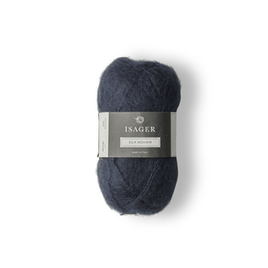 ISAGER SILK MOHAIR is with its blend of 25% silk and 75% super kid mohair a beautiful, soft and shiny Yarn with a light and fluffy structure. We use it primarily together with other Yarns, but it is also beautiful used individually perhaps especially in a simple design. A structured pattern will not show in this Yarn, unless the Silk Mohair is knitted together with another smoother Yarn. As Silk Mohair is soft and fluffy, some shedding must be expected both while knit ting and from the finished project. The shedding will deteriorate in time but please consider with which garments Silk Mohair is worn. Isager Silk Mohair is of finest quality with long fibres which reduce shedding.