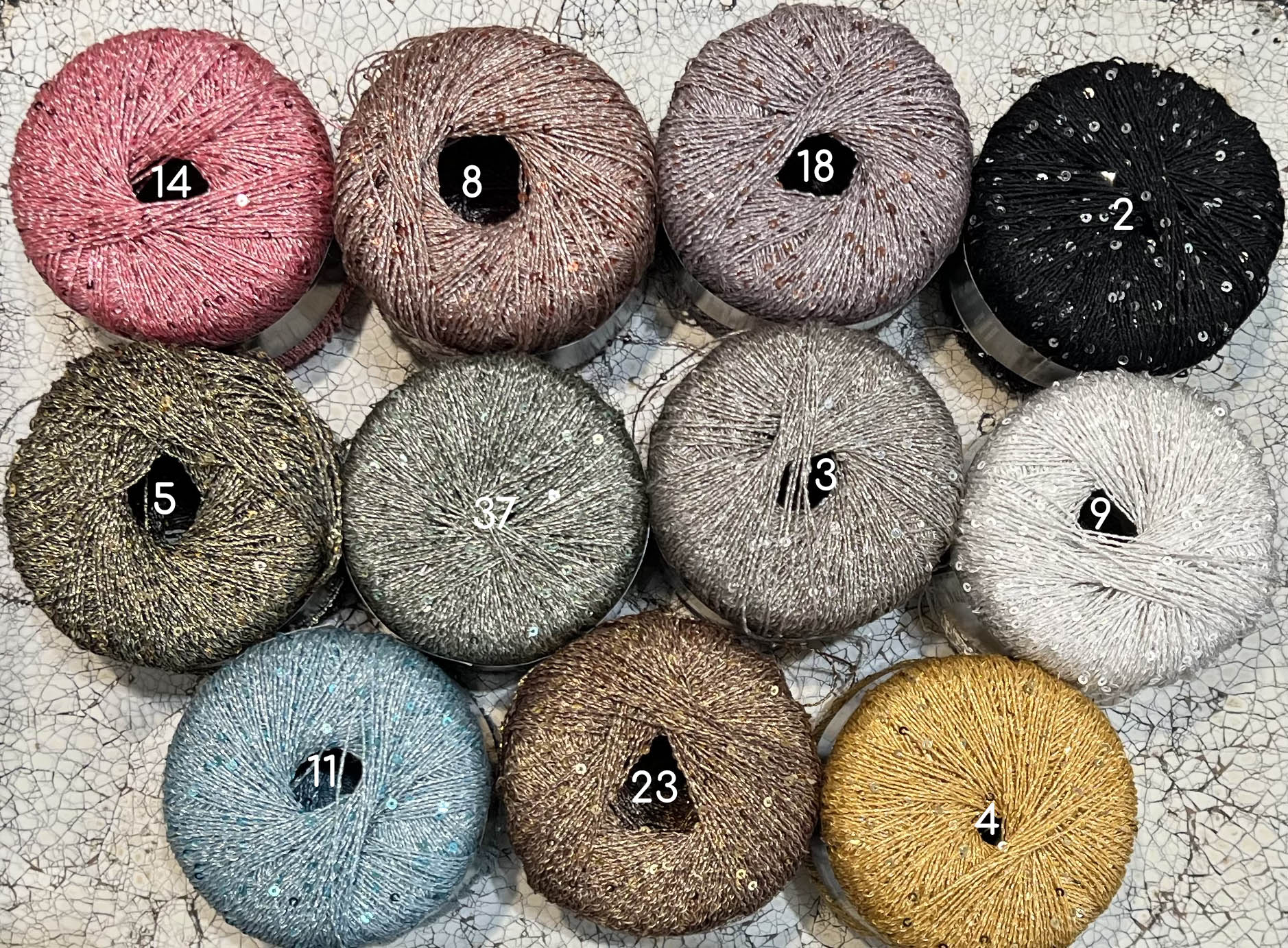 Crystal is a glamorous lace weight yarn studded with shimmering sequins. This versatile yarn can be used alone to create jewelry and accessories, or paired with other yarns, such as Luna or Stella, to make elegant garments. A single ball goes a long way in adding drama to your projects.
